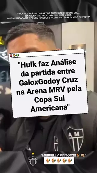 HULK FAZ ANÁLISE DA PARTIDA ENTRE GALOXGODOY CRUZ NA ARENA MRV PELA COPA SUL AMERICANA #galo #viraliza #atleticomg #ultimasnoticias #maisviews