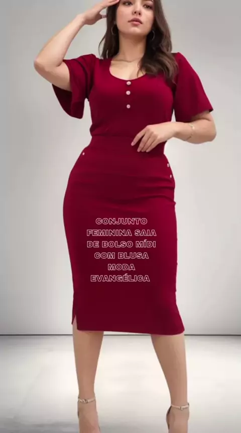 ✨Confira nosso novo **Conjunto Feminino Saia Bolsa Midi Com Blusa Moda Evangélica Plus**! 🌟 Este conjunto elegante na cor Marsala é perfeito para qualquer ocasião. Com mais de 500 unidades vendidas e uma avaliação de 4.3 estrelas, este look é um sucesso garantido. A blusa possui botões decorativos e mangas soltas, enquanto a saia midi vem com bolsos práticos. Não perca a chance de adicionar este conjunto versátil e estiloso ao seu guarda-roupa! 🔗 Gostou? Comenta eu quero que te envio o Link!