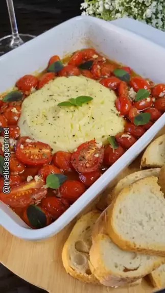 Aperitivo de queijo com tomatinhos para acompanhar torradas e vinho !!! 😋🍷❤️ Ingredientes: ✔️1 peça do seu queijo preferido, de prefência de consistência mais mole ✔️350g de tomate cereja ✔️temperos à gosto ✔️pão ou torradas Gostou? Compartilha com quem você acha que vai gostar também!! #aperitivo #entrada #vinho