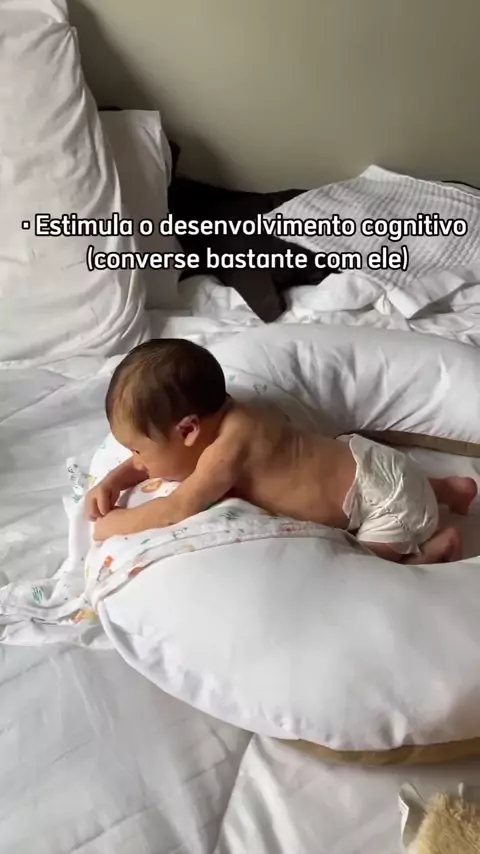Fazer tummy time desde os primeiros dias ajuda o bebê mais do que parece. Fortalece o pescoço, desenvolve a coordenação e prepara o corpo para rolar, sentar e engatinhar. Poucos minutos por dia já fazem diferença. #tummytime #desenvolvimentoinfantil #recemnascido
