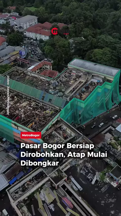 Pasar Bogor mulai dibongkar, Jumat (9/1/2026). Bagian atap bangunan telah dibongkar sebagai tahap awal pekerjaan, sementara area pasar kini dipagari untuk membatasi aktivitas di dalam lokasi. Pembongkaran akan memakan waktu enam bulan. Ke depan, pasar yang berdiri sejak abad ke-17 itu akan dikembangkan menjadi area terpadu yang menghadirkan hotel, convention hall, pasar tematik, kawasan kuliner, serta fasilitas parkir modern di pusat Kota Bogor. Video: Jiddan/MetroBogor . #pasarbogor #pembo... More
