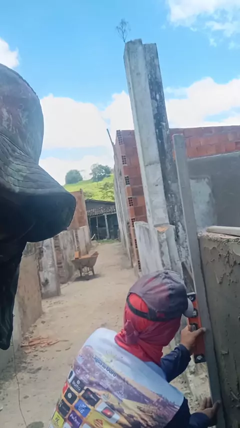 parede a prumada com o nível de mão.... #construcaocivil #MFCONSTRUÇÕES