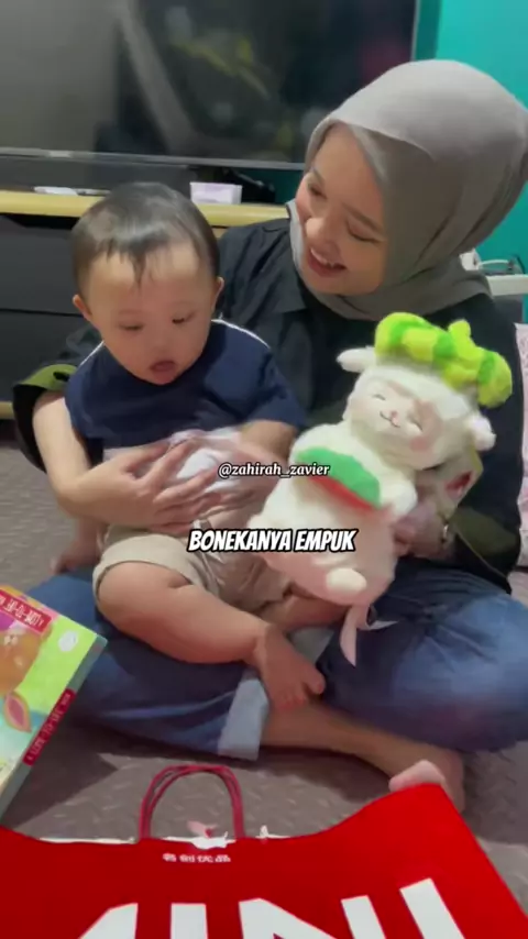 Banyak yang bilang senyumnya Zavier candu banget masyaAllah, kebetulan banget boneka @Miniso Official @minisoshopid mirip sama senyumnya, jadinya aku beli deh buat jadi temen mainnya Zavier🍉 #minisoindonesiaToy #minisoplushworldtour #senyum #candu #zavier #downsyndrome #downsyndromerocks #downsyndromelove #bayilucu