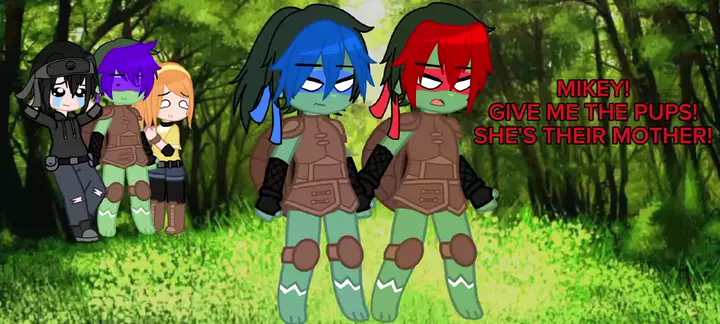 As crianças que Mikey tava são os filhos da Mia e do Leo e Raph, do futuro