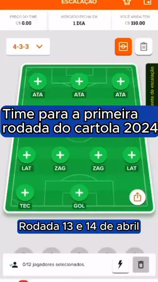 Time para a rodada 1 do CartolaFC 2024. Rodada acontece nos dias 13/04 e 14/04. Siga para mais dicas. #cartola #Brasileirão #Futebol