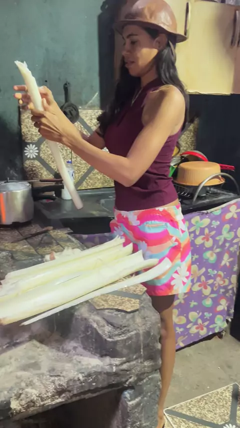 Preparando o palmito da bananeira pra comer