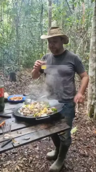 Acampado na mata fazendo comida boa