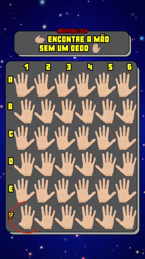 Encontre a mão sem um dedo ✋🏼#testedevisão #raciociniologico #testepsicotecnico #quiz #desafio