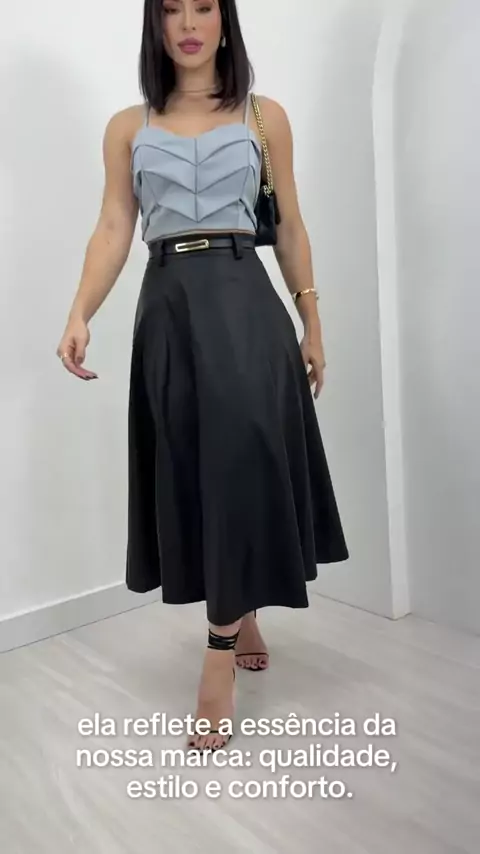 Saia Longa Midi Couro Ecologico Feminina Cintura Alta Moda #saia #evangelica #cristaã