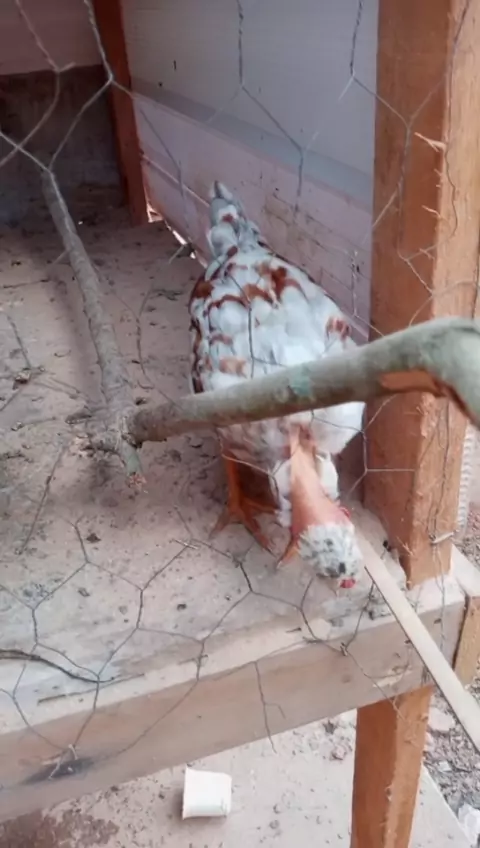 Galo e Galinha Garnizé e o franguinho. O pó de serra serve para tirar o cheiro forte que fica das fezes deles. #coisasdaroça #galogarnize #criacaodegalinha #bichosemcasa