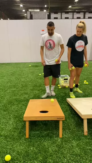 Corn hole challenge using the feet ⚽️ #fyp #foryou
