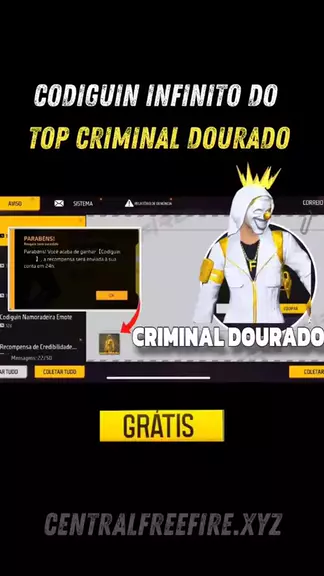 CHEGOU!!! Codiguin infinito do Top Criminal Dourado no Freefire, resgate agora! #freefire #codiguin