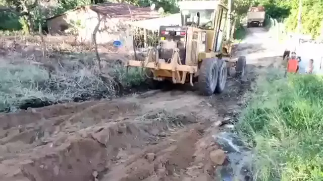 MOTONIVELADORA concertando estrada cheia de PEDRA! TEM QUE TER CUIDADO. #motoniveladora
