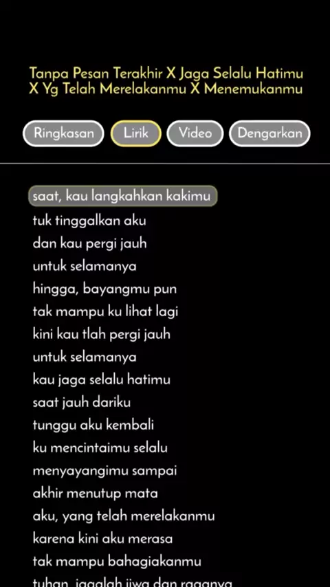 tinggalkan satu kata kata #liriklagu #tanpapesanterakhir #jagaselaluhatimu #yangtelahmerelakanmu #menemukanmu #lyrics #