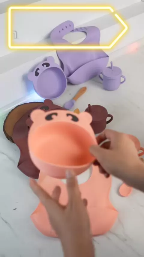 Mangkuk silikon karakter set isi paket 1. mangkuk 2. sendok 3. gelas 4. celemek bhn full silikon food grade BPa free mti pecah awet tanaha microwawe dan bisa masuk freezer suction #mangkuksilikonbayi #mangkukbayi #mpasi #bebiena
