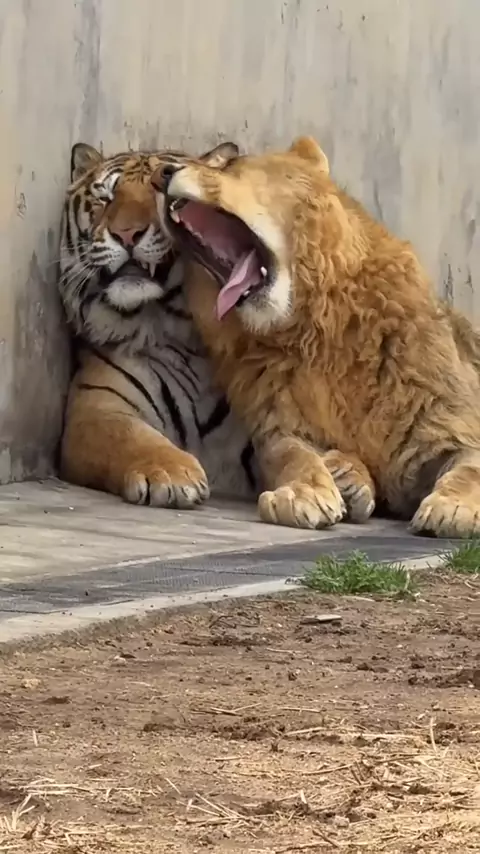 Uma cena rara e emocionante: momentos de carinho entre uma leoa e um tigre, mostrando que o amor não tem espécie. #AmorAnimal #LeoaETigre #NaturezaEncantadora #ReinoAnimal #CuriosidadesAnimais