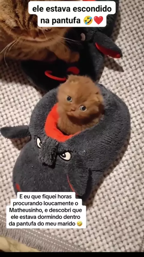 ele estava escondido na pantufa #gatos #pets #viraliza #animais #gatinhos