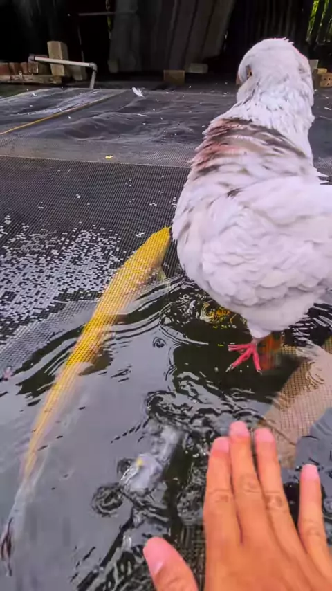 karna ikanya makin galak. jadi disiram aja gess. gbisa nyemplung di kolam #pet #pigeon #merpatilovers #merpati