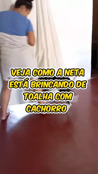 veja como a neta está brincando com cachorro de toalha