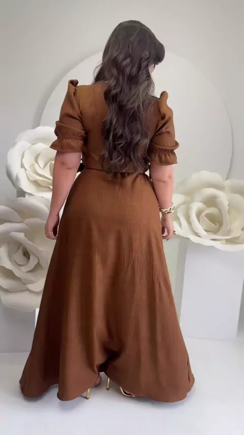 Vestido Karol 🤎 Elegância e conforto em um só look! Confeccionado em tecido dunas linho sem elastano, este vestido longo traz um caimento natural e sofisticado. Possui gola em V e mangas princesa com elastano, garantindo liberdade e estilo. Além disso, é completamente forrado para maior conforto e sem transparência. O destaque fica por conta do laço que valoriza a cintura, proporcionando um toque feminino e delicado. 💕 #modaevangelica #ccb #feminina #modafeminina #vestidolongo
