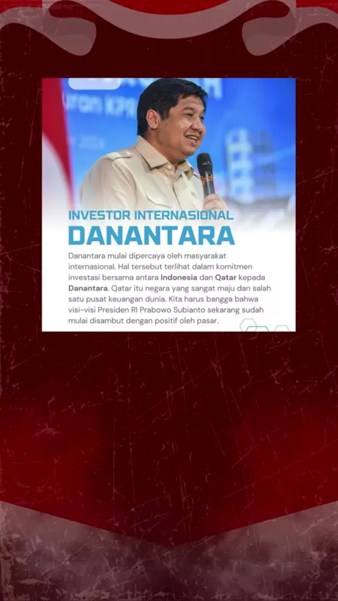 Danantara dipercaya oleh masyarakat internasional, menunjukkan komitmen investasi antara Indonesia dan Qatar. Menjadi pusat finansial dunia, Danantara membangun masa depan ekonomi yang lebih kuat #Danantara
