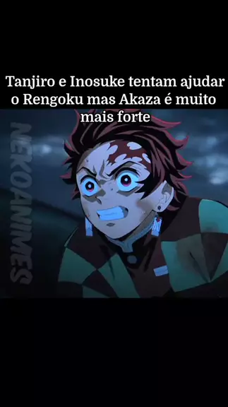 Tanjiro e Inosuke tentam ajudar o Rengoku mas Akaza é muito mais forte
