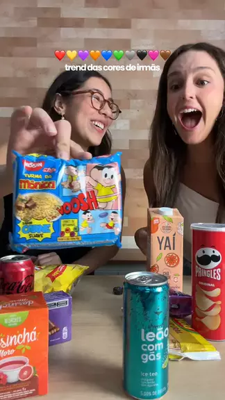 Trend das cores 🎁 com as irmãs #presente #doces #food