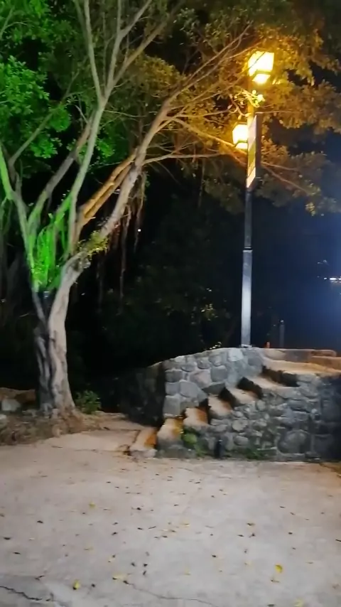 O resort de verão tem um ar fresco. A vista noturna é linda.