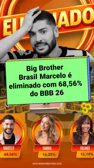 Big Brother Brasil Marcelo é eliminado com 68,56% do BBB 26. #bbb26 #eliminação #tvglobo #gshow #paredao