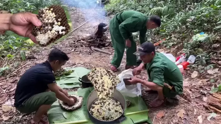 Sebuah sarang lebah ditemukan di tepi tebing, yang diturunkan oleh beberapa orang. Apakah benar-benar enak untuk dimasak? # Beehive