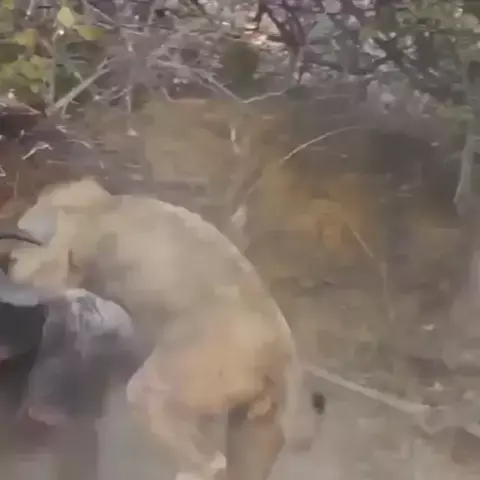 Leão ataca búfalo