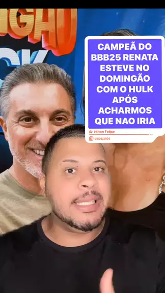 CAMPEÃ DO BBB25 RENATA ESTEVE NO DOMINGÃO COM O HULK APÓS ACHARMOS QUE NAO IRIA #Renata #bbb25 #domingaocomHuck #KWAINOTICIAS
