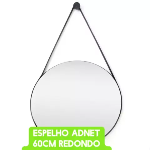 Espelho Adnet 60cm Redondo Decorativo Alça de Couro + Pino Pendurador Comente eu Quero que mando o Link