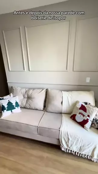 Antes e depois da nossa parede de boiserie ✨ #sala #boiserie #decoração #salapequena