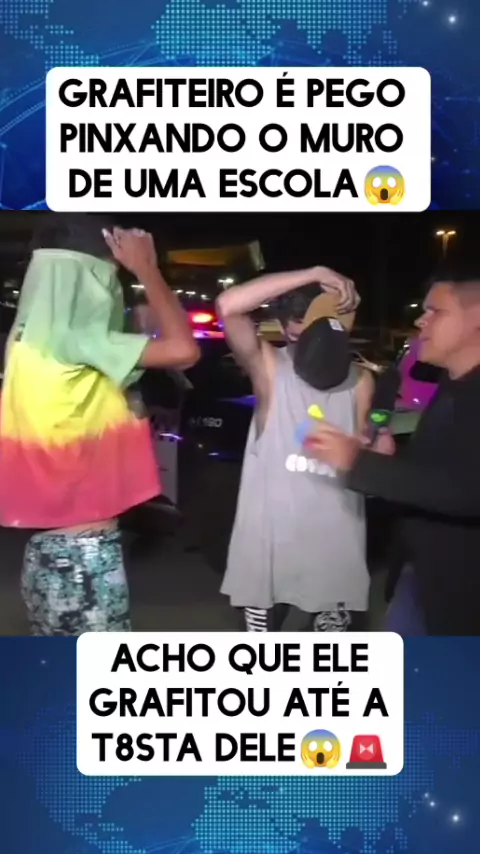 Grafiteiro é pego pinxando o muro de uma escola