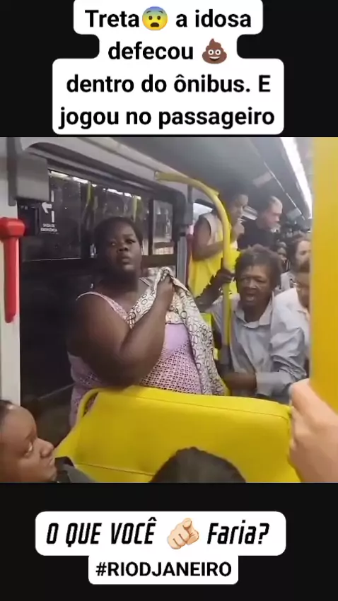 #Treta #riodejaneiro #Notícia #babado #jonal . uma senhora no Rio de Janeiro defecou dentro do ônibus, e o motorista não parava começaram a questioná-la ela se irritou jogou as fezes no rapaz dentro do ônibus. O que você faria?
