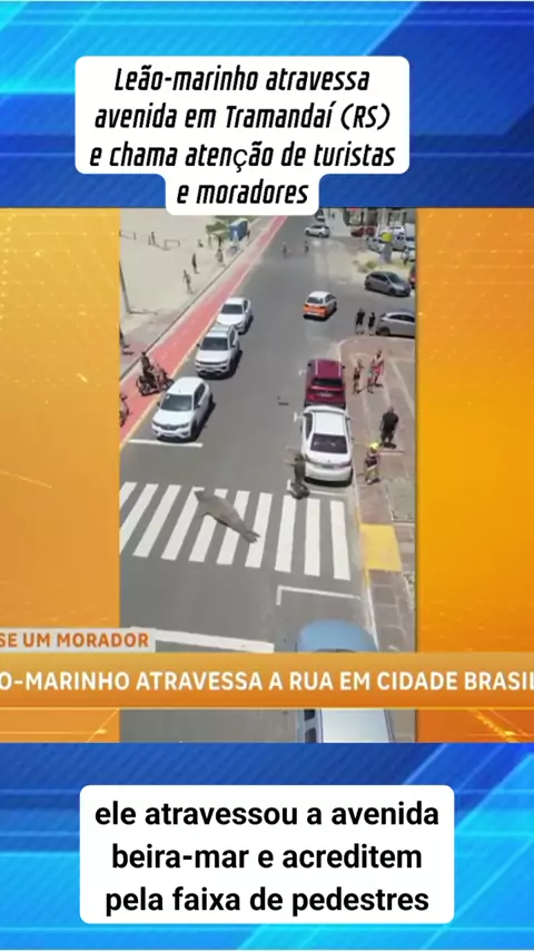 Leão-marinho atravessa avenida em Tramandaí (RS) e chama atenção de turistas e moradores #ultimasnoticias #news #noticias #viral