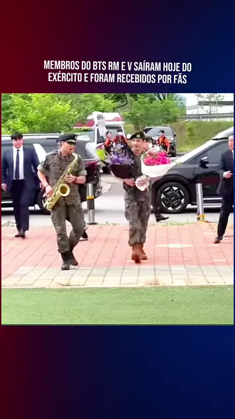 Membros do BTS RM e V saíram hoje do exército e foram recebidos por fãs #noticias #ultimasnoticias