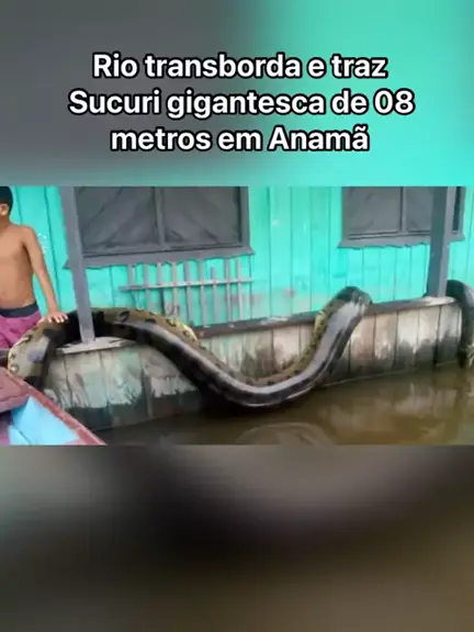 Nos últimos dias, o Rio Solimões foi atingido por fortes chuvas e acabou transbordando. Anamã, uma das cidades do Amazonas afetadas, registrou uma Sucuri gigantesca com 06 metros de comprimento #bizarro #kwai #viral #Notícia