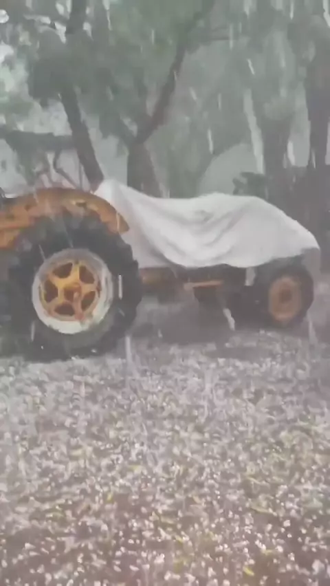 ☔🇦🇷 Chuva de granizo pesada atinge Chuquis, La Rioja, na Argentina, em 16 de fevereiro de 2025. #Chuva #Argentina #Natureza #granizo #noticias