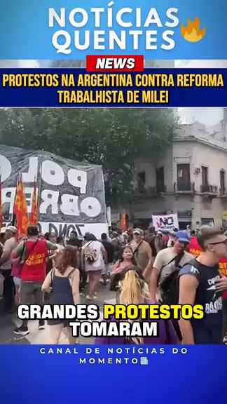 Protestos na Argentina contra reforma trabalhista de Milei Protestos tomam as ruas da Argentina contra a reforma trabalhista debatida no Senado. Sindicatos e movimentos sociais pressionam pela rejeição do projeto e alertam para possível aumento da insegurança no emprego. Você é a favor ou contra mudanças desse tipo? #Argentina #Milei #ReformaTrabalhista #Protestos #Notícias