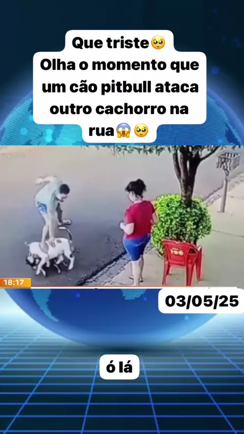 Que triste🥺olha o momento que um cão pitbull ataca outro cachorro na rua😱🥺. #noticias #News #ultimasnoticias