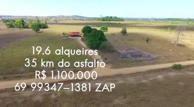 ✅19.6 alqueires ✅18 alqueires no capim ✅casa de madeira simples mais boa ✅ curral simples utilizável ✅35 km do asfalto ✅terra 100% mecanizavel ✅terra com 2 divisões ✅terra solos mistos argiloso ✅terra muito boa ✅1.100.000