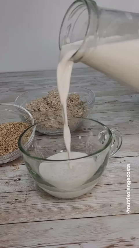 A dica é 🌻 Leite vegetal de gergelim 🌱 Ingredientes: -Sempre 1 medida de sementes de gergelim com casca; -3 medidas de água; Em uma tigela, coloque uma medida de gergelim e cubra com água, e deixe descansar por no mínimo 4h. Lave, e coloque no liquidificador e liquidifique por 5min, em seguida coe no voal, e está pronto 😋 Conserve na geladeira por até 5 dias ☺️ #nutrisolangecosta #itu #leitevegetal #saúde #kwai