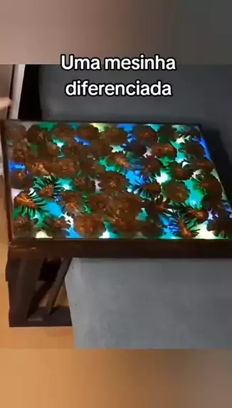 Mesa resinada com luzes e pinha #resinaepoxi #resina #Resinas #sejacriador #EstrelaDeFamília