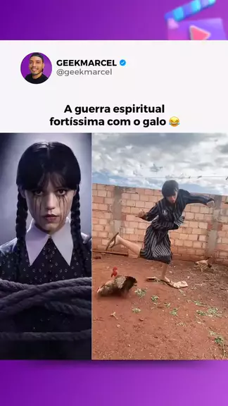 👆🏼 Siga eu pra mais vídeos! Wandinha enfrenta tudo. Menos um galo descontrolado no quintal kkk 😂 _ 🏷️ #wandinha #jennaortega #netflix #netflixbrasil #humorkwai