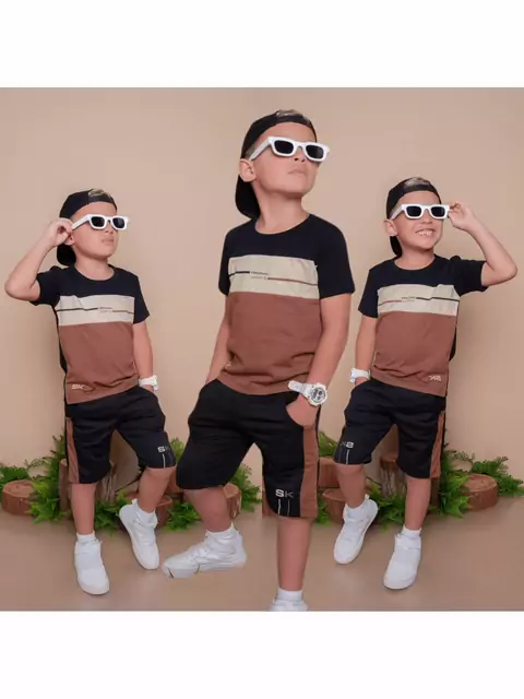 Conjunto Masculino 2 peças, camisa + bermuda Infantil roupa #modafashion #modainfantil #Shein #masculino