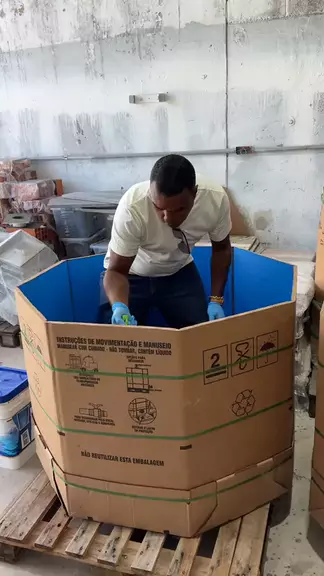 Genial ele. Fez uma Piscina com caixa de papelão
