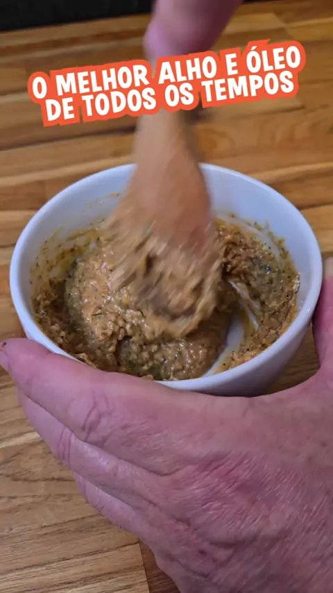 Receita completa 👇👇 Começa colocando em um recipiente 2 cabeças de alho descascados e 30ml de azeite de oliva e leve ao micro-ondas por 5 minutos. Separe o azeite e reserve. Coloque em um processador os dentes de alho, 100g de manteiga, 1/2 colher de chá de sal, 1/2 colher de chá de pimenta do reino, 2 colheres de sopa de passata de tomate e 1 colher de sopa de salsinha picada e processe tudo até obter uma consistência bem homogênea. Depois acrescente 30g de parmesão ralado e mais um pouco