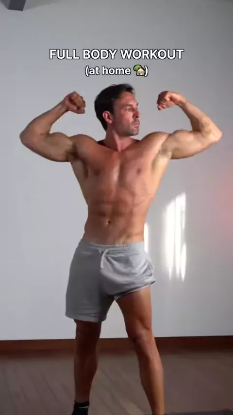 Full Body Workout at Home 🏡 Slow, controlled full body workout. Less bounce, more strength. Circuit: Wide-to-Narrow Squat Pulse Push-Up + Side Rotation Forearm Plank + Hip Dip Reverse Lunge + Reach Overhead Side to side push ups Walk out + shoulder taps Squat to Calf Raise + Reach Up 45s / exercise, 15s rest between Do 3 rounds! المزيد